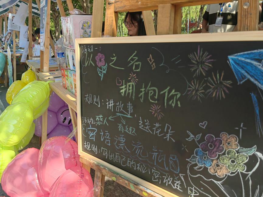 艺术与设计科学系尝试探索“艺术+心理”育人模式,“心理绘画工作坊”、“百变我show自画像创作”、“心灵蜜语漂流瓶”和以“花之名拥抱你”四项特色活动将心理健康教育与美育深度融合,以艺术实践引导学生探索自我、传递温暖、感悟生命之美,吸引了全校千余名学生参与。活动期间,心理绘画工作坊以“情绪符号”为载体,鼓励学生用水彩、拼贴等媒介自由表达内心世界,让焦虑与压力化作斑斓画作;自画像创作突破传统技法,以抽象与象征风格开启与自我的深度对话,200余幅作品展览引发学生对“悦纳自我”的思考;心灵蜜语漂流瓶通过线下抽取奖品的吸引师生参与,参与者将自己的烦恼、困惑、心愿或鼓励的话语写在纸条上,放入漂流瓶中。大家随机抽取他人的漂流瓶,阅读其中的内容给予回复或留言。此活动累计收到匿名留言100余份,陌生人的善意书写让“你并不孤单”成为校园最动人的回响;“花之名拥抱你”故事换花活动则以“一故事换一花”的浪漫形式,在校园广场交换300份真挚故事与鲜花,承载欢笑与泪水的“故事树”成为情感共鸣的象征。系列活动以艺术为纽带,将创作、互动与分享融入心理健康教育,既彰显了艺术疗愈的独特价值,也为校园注入温暖向上的精神力量。许多参与者表示,在参与活动过程中,原本压抑的情绪得到了释放,对自己也有了新的认识和思考。