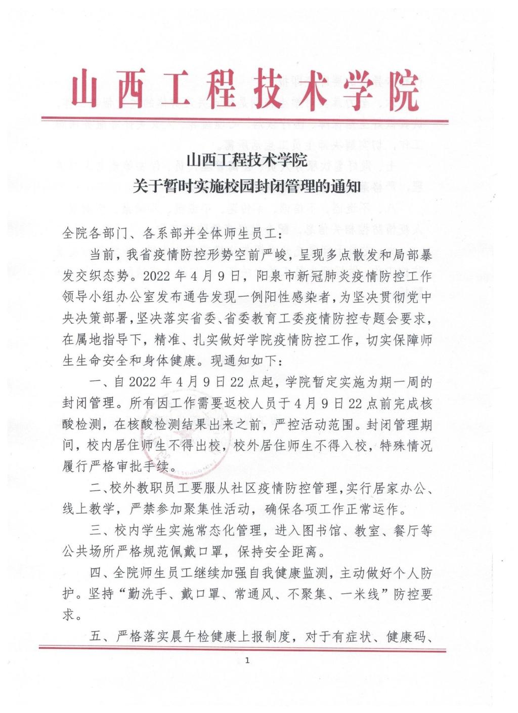 ac米兰官方网站关于暂时实施校园封闭管理的通知
