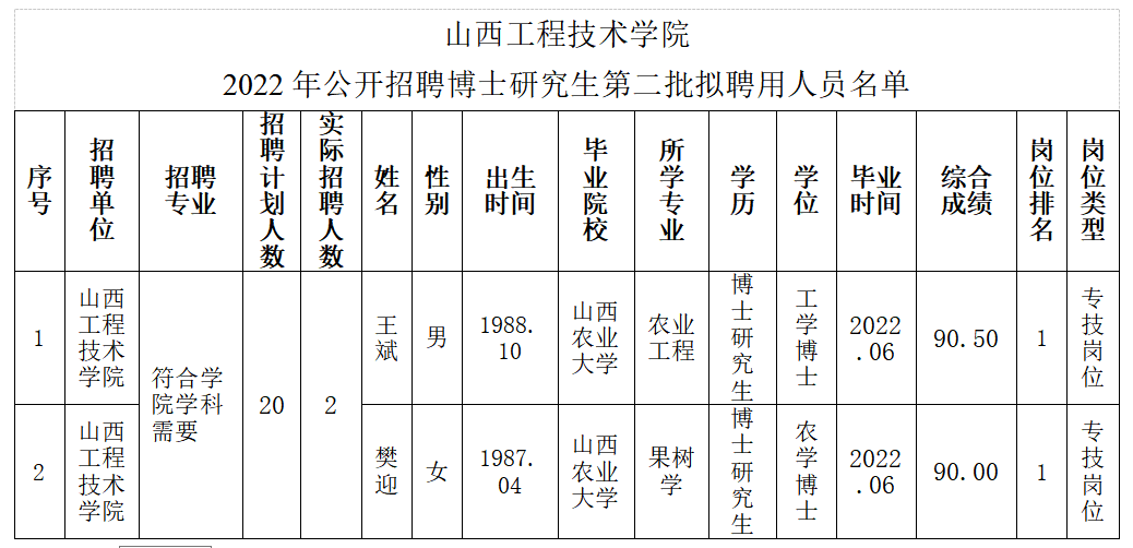 根据国家和我省事业单位公开招聘工作有关政策规定,现将我单位2022年度公开招聘博士研究生第二批拟聘用事业单位工作人员予以公示。