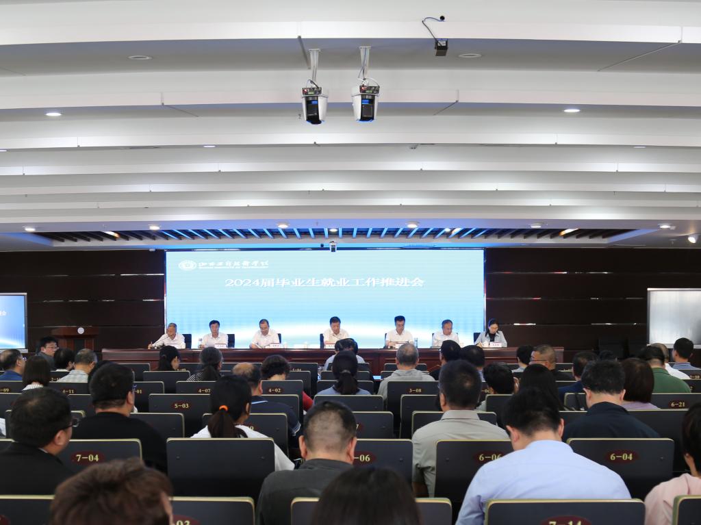 5月15日上午,学院在图书馆六层报告厅召开2024届毕业生就业工作推进会,全体院领导出席会议,各教学系班子成员、各教学部负责人、各部门负责人、2024届毕业班专兼职辅导员参加会议。会议由学院党委副书记、院长姜俊兵主持。