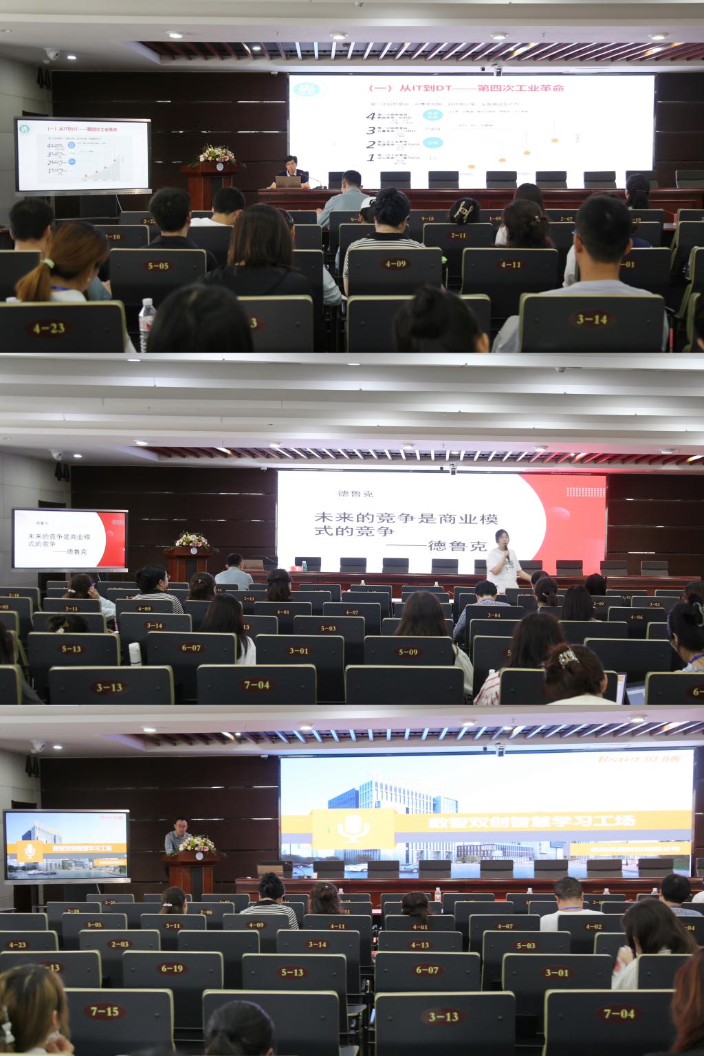 中北大学经济与管理学院科研副院长张克勇教授,山西财经大学营销系副主任李园园副教授,杭州贝腾研究院委员刘庆分别以《数字经济发展现状、趋势及研究热点》《企业商业模式分析》《数智双创智慧学习工场》为题作了专题报告。