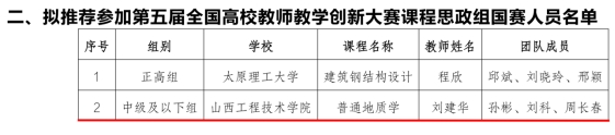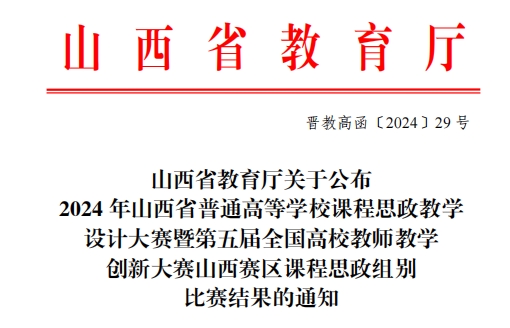 本次比赛旨在深入贯彻落实教育部《高等学校课程思政建设指导纲要》文件精神,紧紧抓住课程建设主战场,以赛促教,引导广大教师进一步挖掘思政元素,提升教学能力,由山西省教育厅主办,山西省高校课程思政建设联盟承办,全省30所高校的252名教师、73个课程团队参赛,经网络评审、现场评审和冠亚军争夺赛后确定个人(团队)一等奖7个、二等奖16个、三等奖23个,并推荐2个教师(团队)参加国赛。