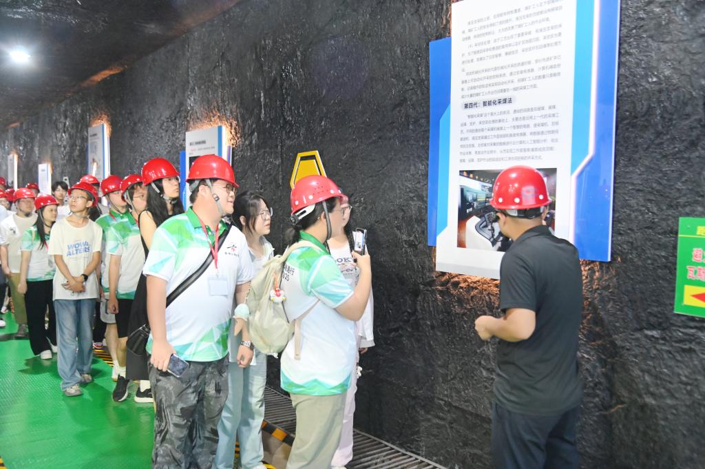 会后,实习团参观了学院煤矿实景教学培训基地,近距离感受煤炭开采流程。进入到煤矿实景教学培训基地,青年们在专业老师带领下,通过沉浸式体验、观摩掘进机工作,直观感受煤炭开采、巷道掘进、巷道支护、煤炭运输、矿井通风等矿井生产各环节,对煤炭资源开发与能源革命转型有了更深的了解。
