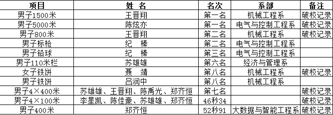 学院代表队由党委委员、副院长叶玉刚担任领队,赵德宁、赵志岗等组成教练组,在全院范围内选拔高水平运动员参赛。教练团队科学制定训练计划,参赛运动员刻苦训练,明确比赛目标,最终实现了运动成绩和精神文明双丰收。学院田径队揽获2金2银1铜,1个第六名,2个第八名,男子4×400米第七名,荣获男子团体总分第五名。