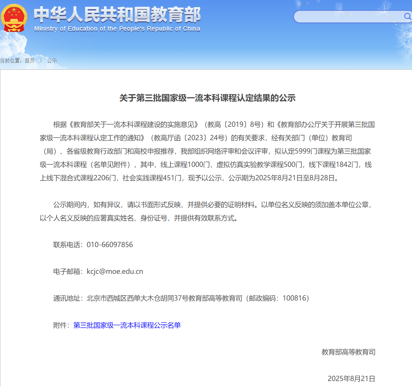 8月21日,教育部高等教育司发布了《关于第三批国家级一流本科课程认定结果的公示》,ac米兰史美青教授负责的《思想政治理论课实践教学》成功入选社会实践一流课程,这是ac米兰在课程建设方面取得的历史性突破。