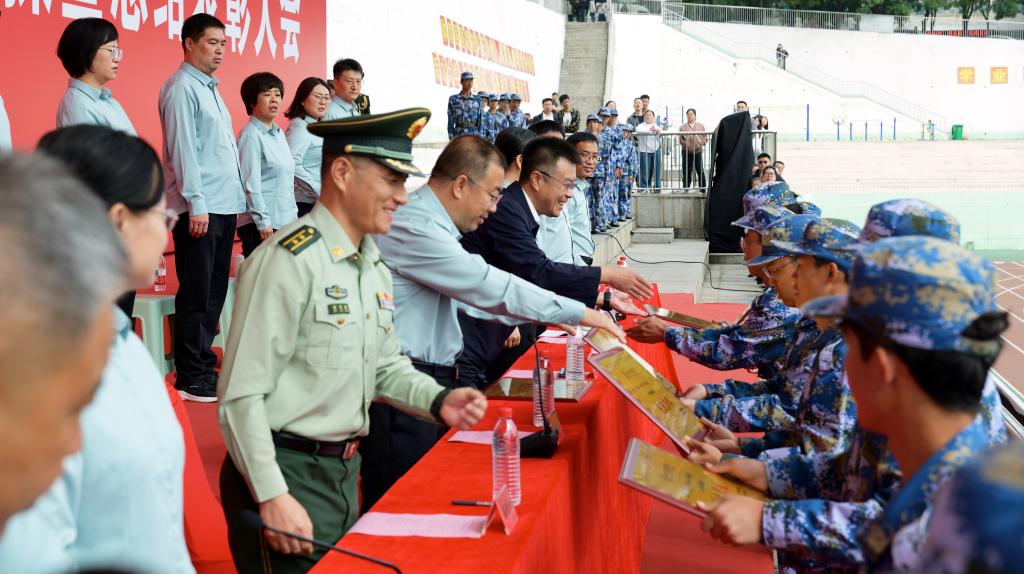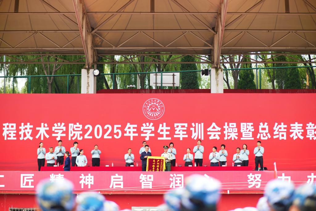 会上,姜俊兵代表学院向承训部队赠授锦旗。军训团副政委许韶平宣读了《关于表彰2025级学生军训先进集体和先进个人的决定》,与会领导向受到表彰的先进集体和先进个人颁奖。