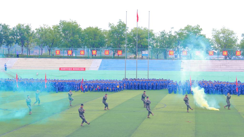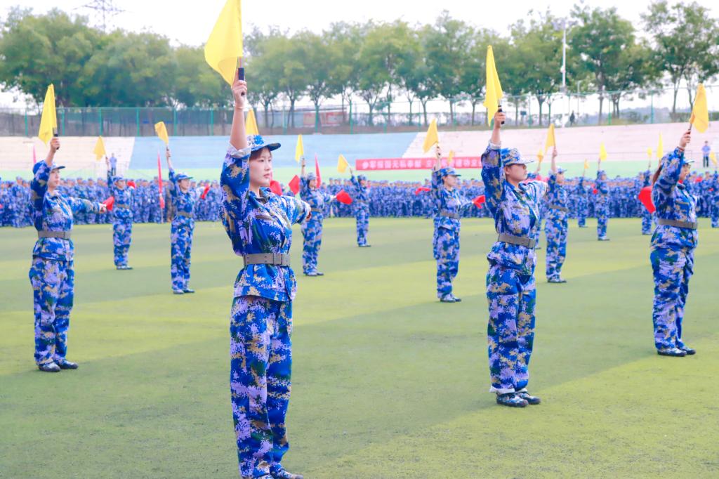 迷彩戎装,生机勃发;步履坚定,目光如炬;拳脚生风,刚劲有力;口号铿锵,回声嘹亮。会操表演环节,参训学生及教官分别进行了分列式、旗语操、军体拳、军事特色项目等军事科目汇报表演,在汗水与呐喊中生动诠释了山西工院学子艰苦奋斗、团结协作、追求卓越的青春风貌。