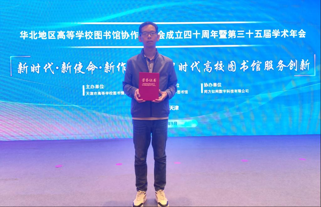 会议对2022-2025年度作出突出贡献的集体和个人进行了表彰。ac米兰图书馆凭借在数智化转型、校园文化建设、信息服务创新、空间再造等方面的卓越成效,荣获“华北地区高等学校图书馆先进集体”称号。同时,馆员禹俊杰同志获评“华北地区高等学校图书馆先进工作者”称号。