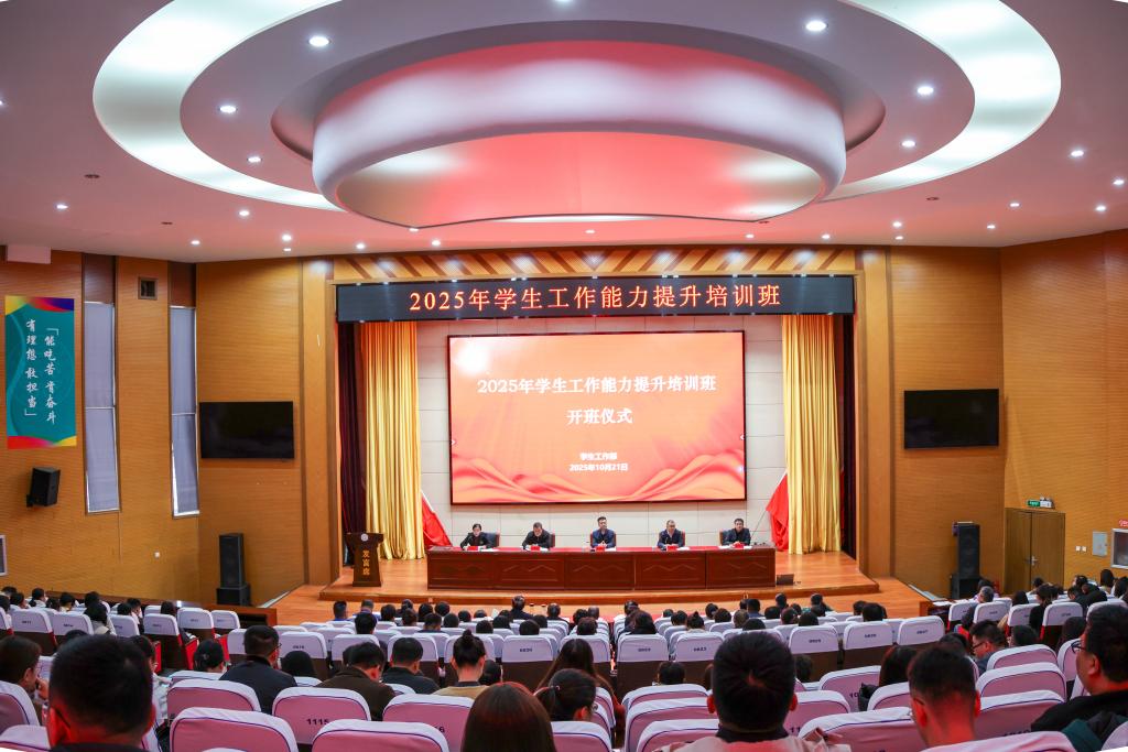 为推动辅导员队伍专业化职业化发展,助力学生工作队伍以更饱满的状态、更专业的能力服务学生成长成才,学院组织开展2025年学生工作能力提升培训。10月21日下午,2025年学生工作能力提升培训班开班仪式在行知楼一层报告厅举行。学院党委书记姜俊兵出席并讲话,组织部、宣传部(统战部)、学生工作部(人民武装部)负责人,各系党总支书记、副书记、全体专兼职辅导员,以及学生工作部(人民武装部)和团委全体工作人员参加。开班仪式由学院党委副书记郑捧柱主持。
