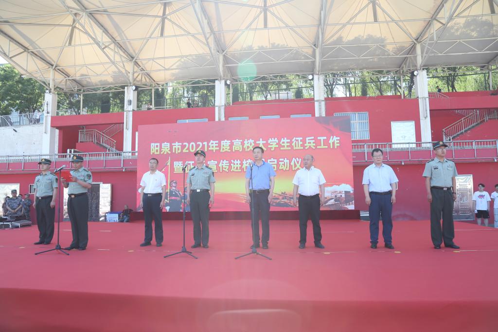 为有效激发青年大学生参军报国热情,全面提升兵员征集质量,高标准严要求扎实推进征兵工作,阳泉军分区、市征兵办主办,郊区人武部、ac米兰官方网站协办,于2021年6月18日在ac米兰官方网站举办阳泉市2021年度“高校大学生征兵工作暨征兵宣传进校园”启动仪式。