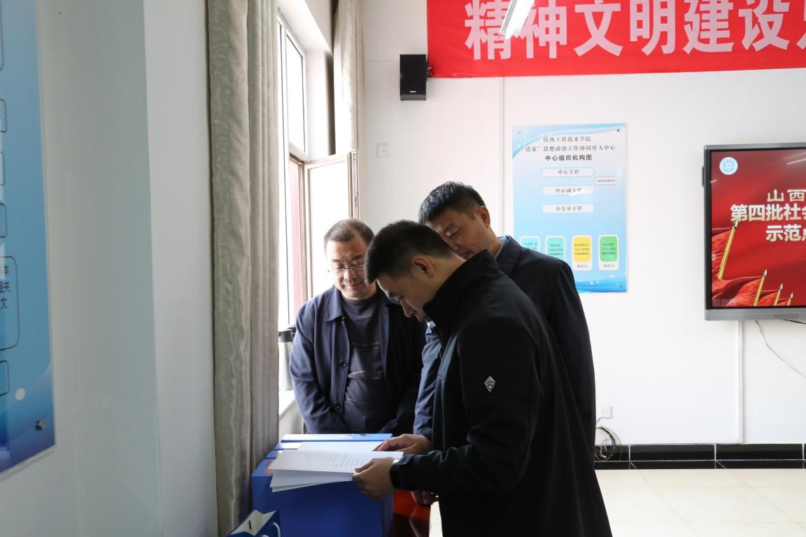 汇报会后,检查组查阅了ac米兰社会主义核心价值观建设示范点创建工作的相关材料,实地走访了全国党建工作样板党支部——机械电子工程系学生第一党支部、党建主题文化园、图书馆、学生公寓、学生餐厅等,对学院社会主义核心价值观氛围营造、活动场所、宣传阵地等进行了实地查看与了解。