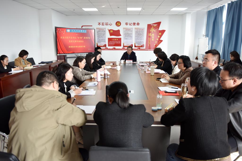 3月15日下午,学院思政部在双创中心A栋505会议室召开习近平总书记“318”重要讲话发表五周年教师座谈会。学院党委副书记郑捧柱出席会议,党委委员、宣传部部长许韶平,院团委副书记张瑶应邀参会,思政部全体教师参加座谈会。会议由思政部党总支书记、主任史美青主持。