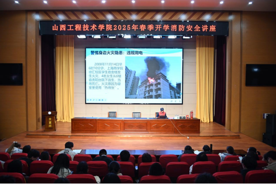 为贯彻落实习近平总书记关于安全生产的重要指示批示精神,切实提升师生消防安全意识,增强火灾预防与应急处置能力,筑牢校园安全防线,2月25日,学院特邀阳泉市高新区消防救援大队讲师王映雪来院开展2025年春季开学消防安全专题讲座宣讲。