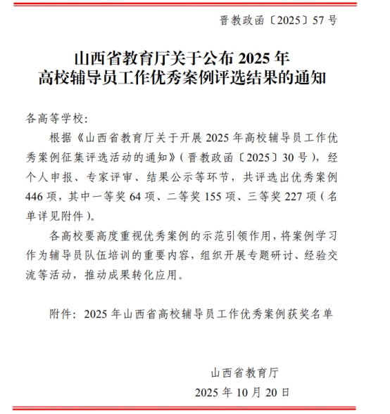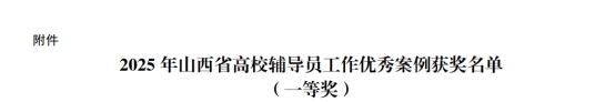 近日,机械工程系辅导员团队在山西省教育厅组织的2025年高校辅导员工作优秀案例评选中表现突出,四位教师提交的案例作品斩获多项荣誉,充分展现了我系辅导员队伍的专业素养与育人实效。