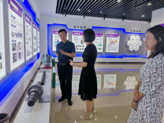 在科技展厅,管培生王岳婷介绍了清研阳泉建设背景、运营模式、教育培训、落地项目等情况。姜俊兵对清研阳泉在科技创新、成果转化、聚才引智等方面的工作表示赞许。