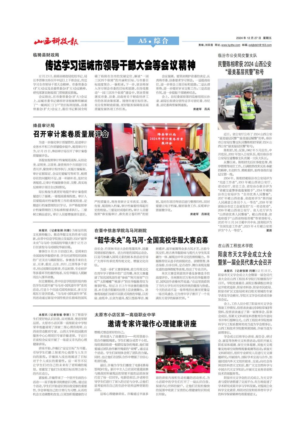 【媒体看山西工院】山西科技报2024年12月27日报道阳泉市天文学会成立大会暨第一届会员代表大会在ac米兰举办