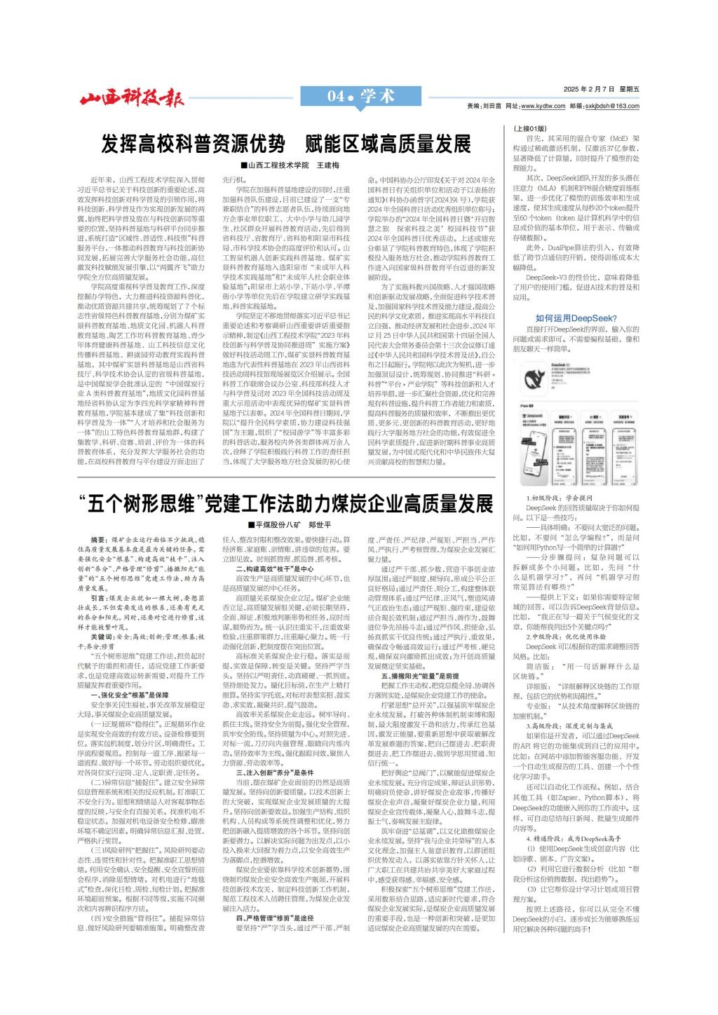 【媒体看山西工院】山西日报2025年2月8日报道ac米兰党委委员、副院长王建梅教授文章:发挥高校科普资源优势,赋能区域高质量发展