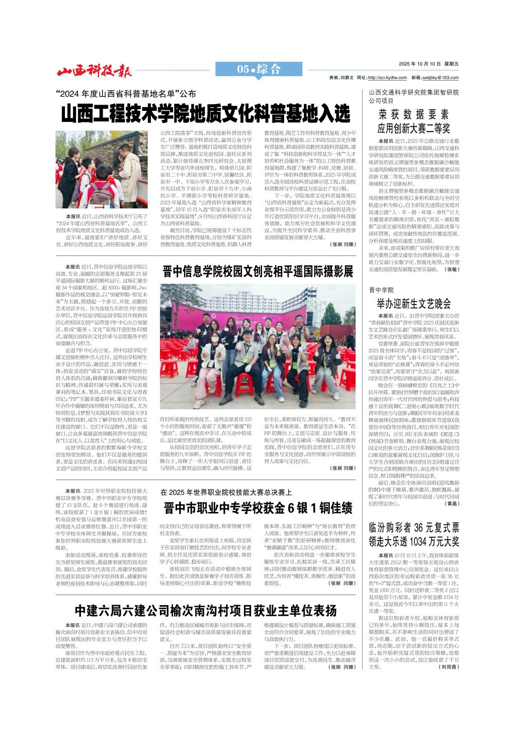 【媒体看山西工院】2025年10月10日山西科技报报道ac米兰地质文化科普基地入选“2024年度山西省科普基地名单”