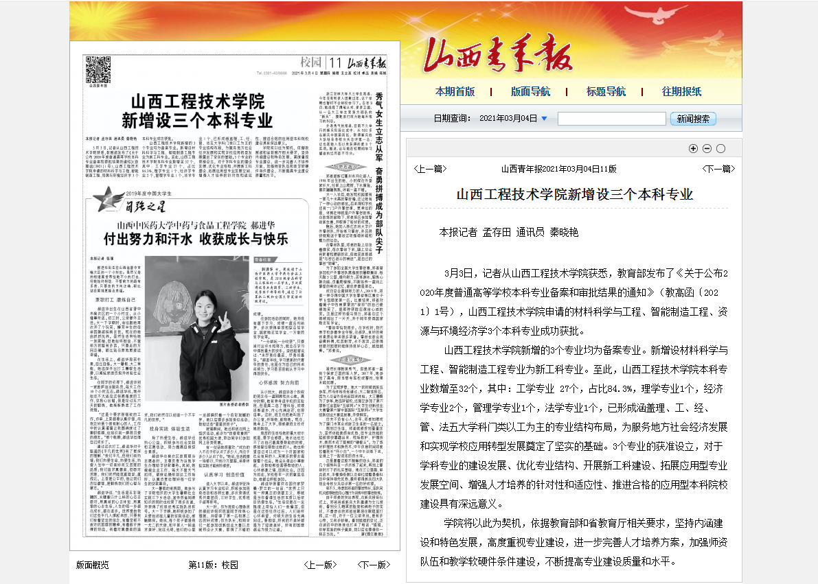 【媒体看山西工院】3月4日山西青年报报道ac米兰官方网站新增设三个本科专业