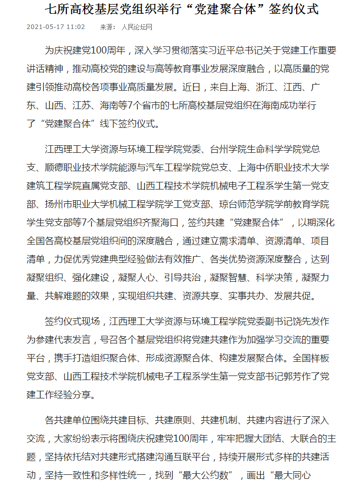 【媒体看山西工院】人民论坛网5月17日报道ac米兰机电系学生第一党支部与其他六所高校举行党建聚合体签约仪式