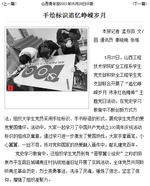 【媒体看山西工院】山西青年报5月28日报道ac米兰官方网站矿业系手绘标识追忆峥嵘岁月