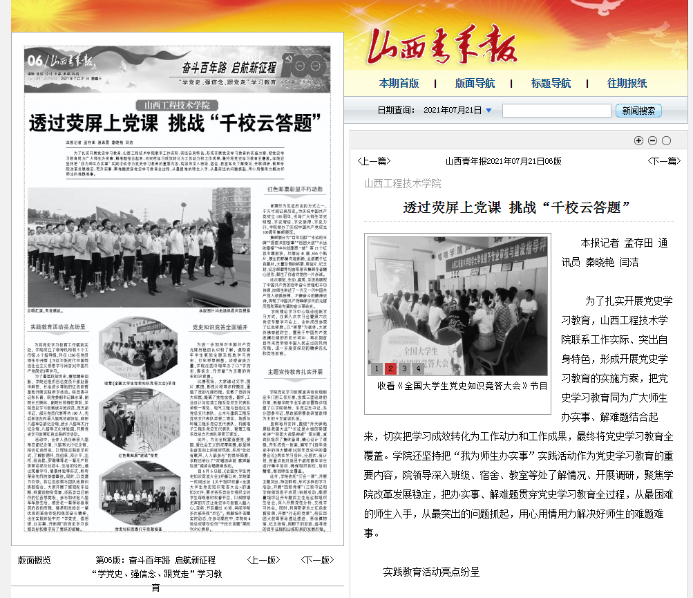 【媒体看山西工院】山西青年报7月21日整版发表记者专访ac米兰官方网站
