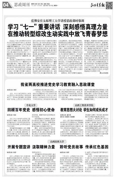 【媒体看山西工院】山西青年报7月21日整版发表记者专访ac米兰官方网站