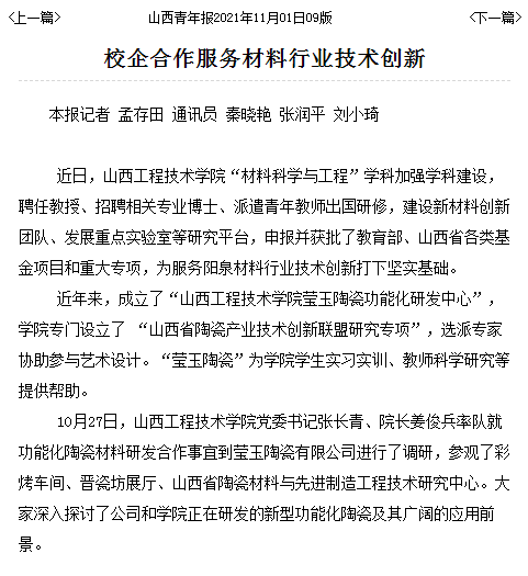 【媒体看山西工院】山西青年报2021年11月1日报道ac米兰校企合作服务材料行业技术创新
