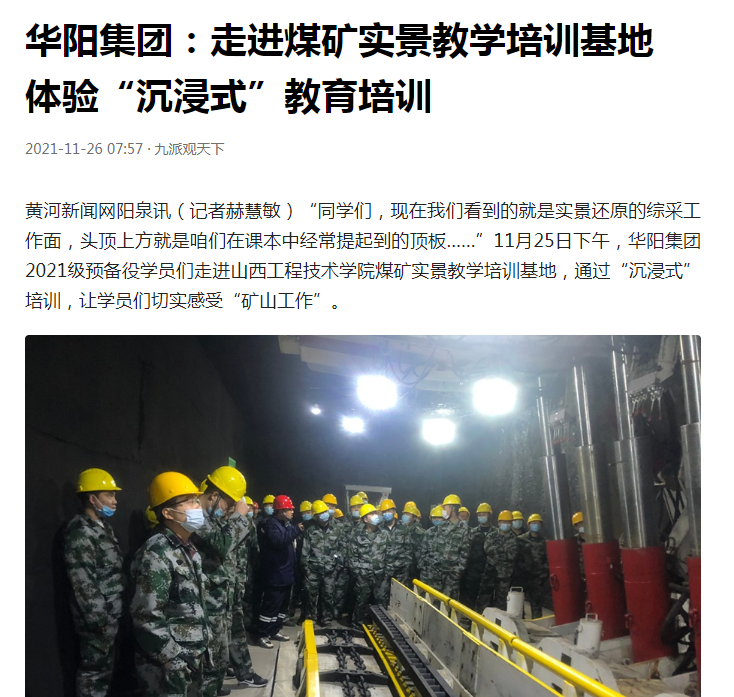 【媒体看山西工院】黄河新闻网阳泉频道11月26日报道华阳集团走进ac米兰煤矿实景教学培训基地体验“沉浸式”教育培训
