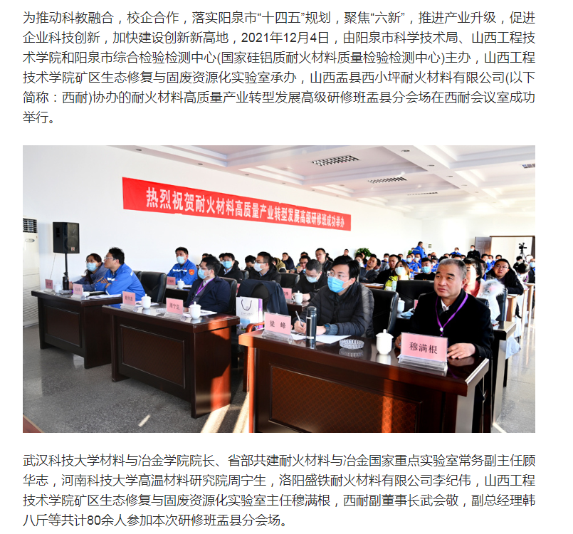 【媒体看山西工院】黄河新闻网2021年12月5日报道ac米兰承办耐火材料高质量产业转型发展高级研修班