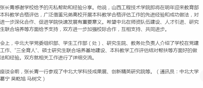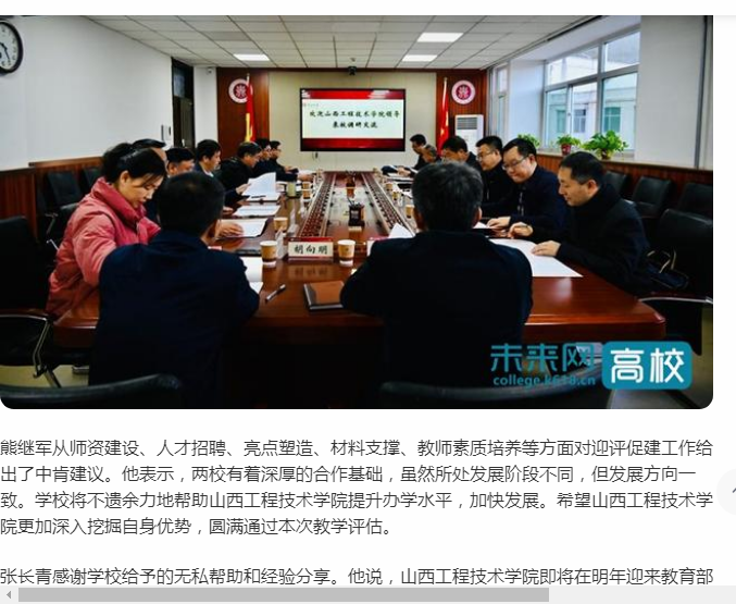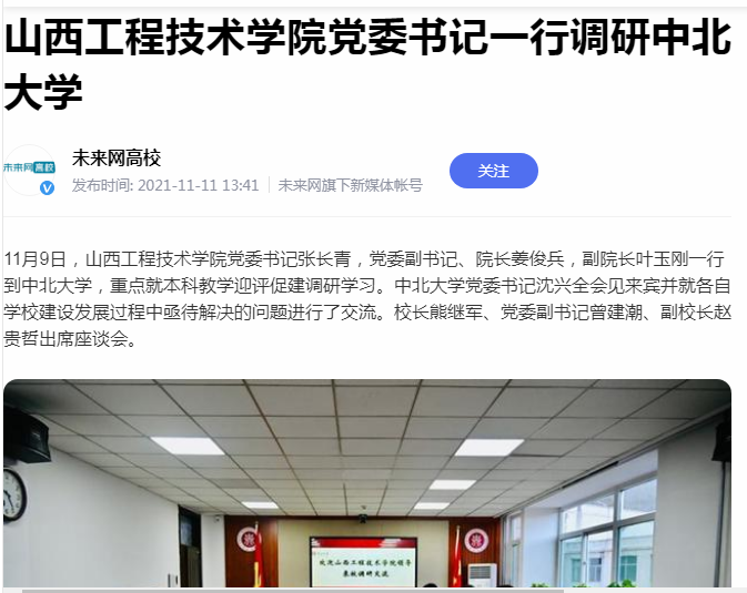 【媒体看山西工院】未来高校网2021年11月11日报道我校党委书记一行调研中北大学