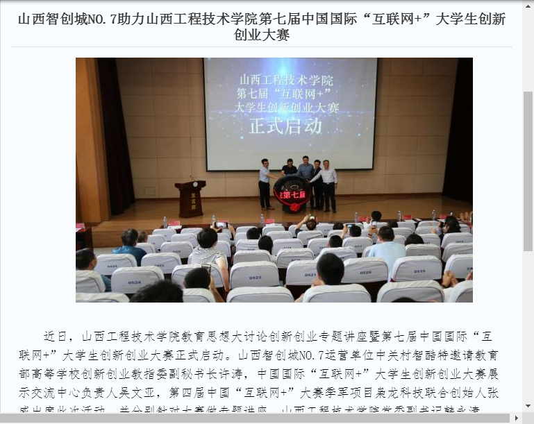 【媒体看山西工院】阳泉市科学技术局2021年6月7日报道我校参与第七届中国国际“互联网+”大学生创新创业大赛