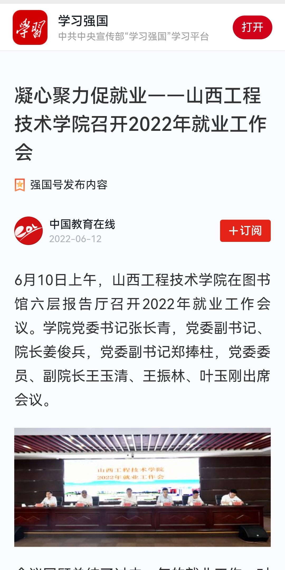 【媒体看山西工院】2022年6月12日学习强国报道ac米兰召开2022年就业工作会