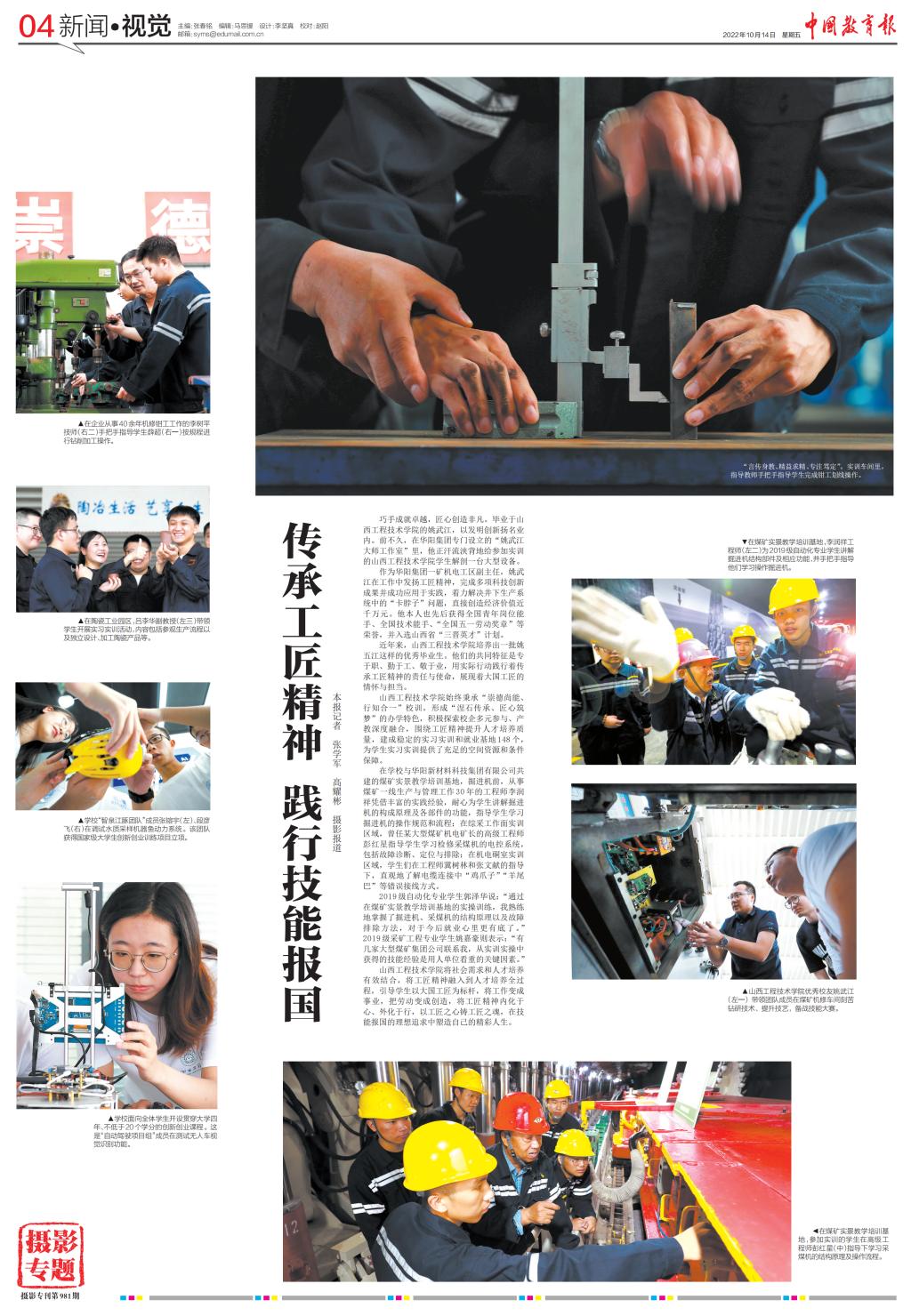 【媒体看山西工院】《中国教育报》2022年10月14日报道ac米兰《传承工匠精神 践行技能报国》