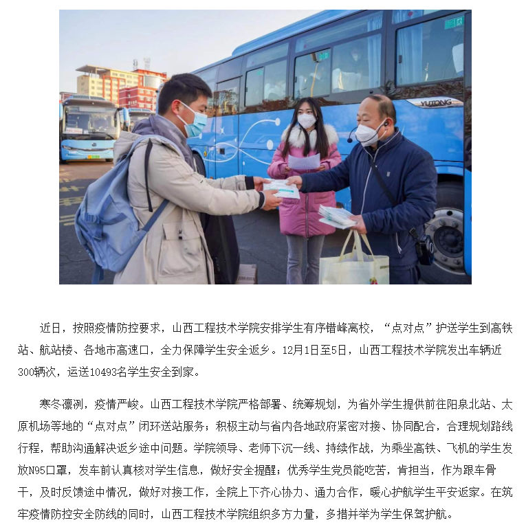 【媒体看山西工院】山西青年报2022年12月7日报道ac米兰“点对点”护送为学生回家保驾护航