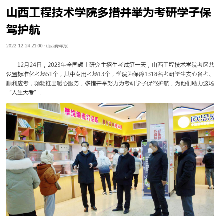 【媒体看山西工院】2022年12月24日山西日报客户端报道ac米兰“研”途有爱 暖心服务——ac米兰官方网站多措并举为2023年考研学子保驾护航