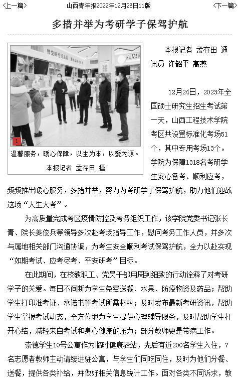 【媒体看山西工院】2022年12月26日山西青年报报道ac米兰多措并举为考研学子保驾护航