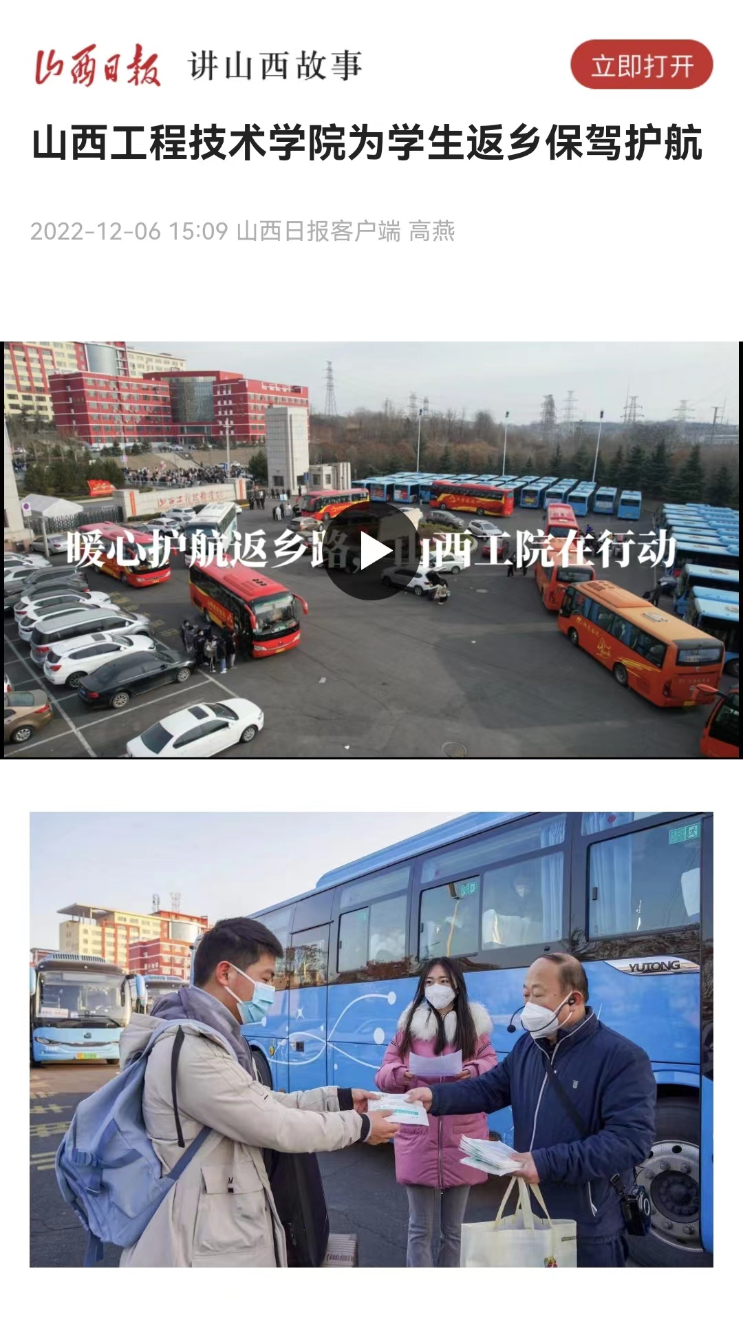 【媒体看山西工院】2022年12月6日山西日报客户端报道ac米兰为学生返乡保驾护航