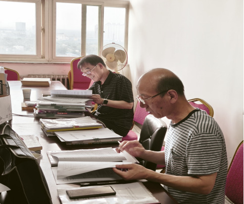 图为两位督导在检查各项教学资料