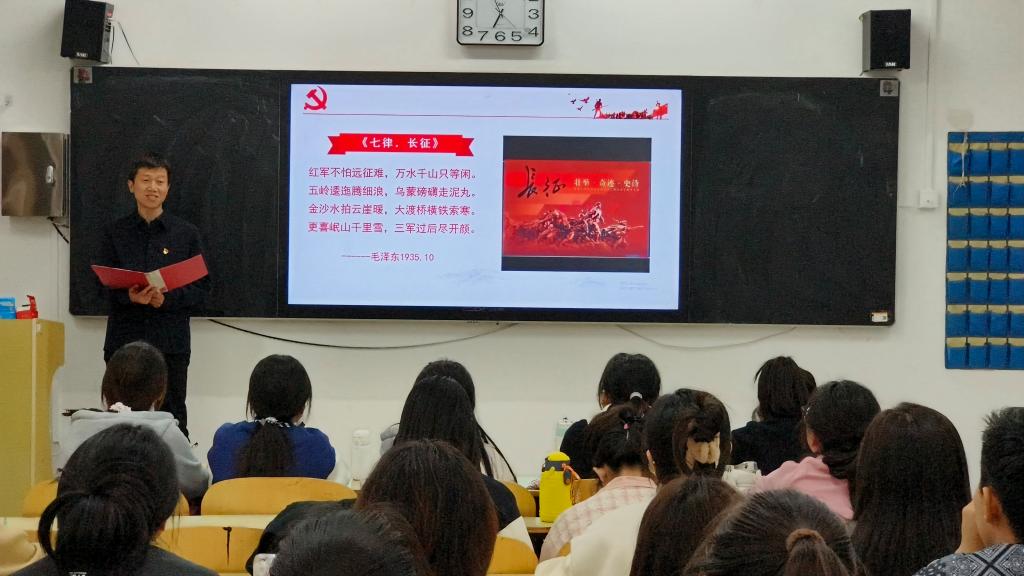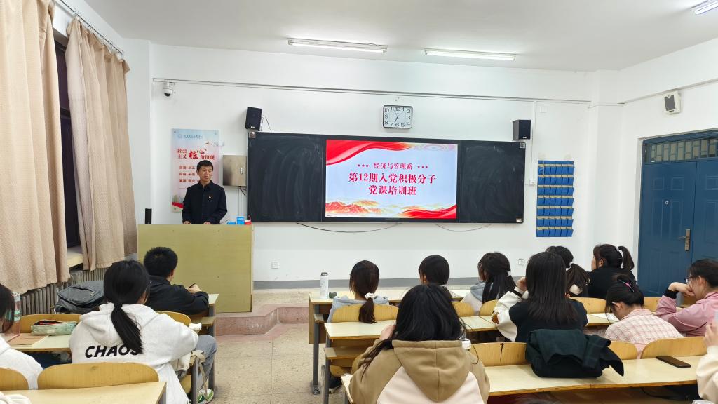为进一步加强对入党积极分子的培养、教育和考察,提高入党积极分子的政治素质和理论修养,严格把好党员发展“入口关”,2024年3月25日晚上19:00,经济与管理系党总支在勤学楼110教室组织开展第12期入党积极分子党课培训。经济与管理系党总支书记刘小军老师以“长征精神”为题作党课第一讲。