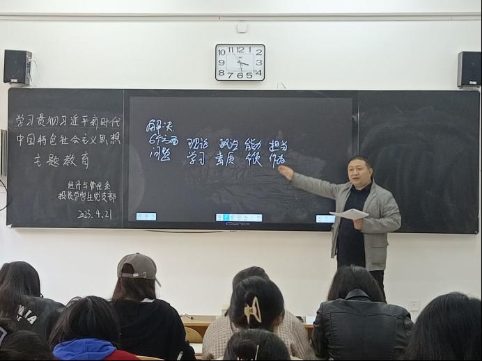 4月21日下午,经济与管理系投资学学生党支部在勤学楼209教室召开学习贯彻习近平新时代中国特色社会主义思想主题教育动员部署会。会议的主要任务是认真贯彻落实学院党委关于开展学习贯彻习近平新时代中国特色社会主义思想主题教育工作方案,安排支部主题教育工作。系党总支副书记、投资学学生党支部书记王琳同志主持会议并进行领学。