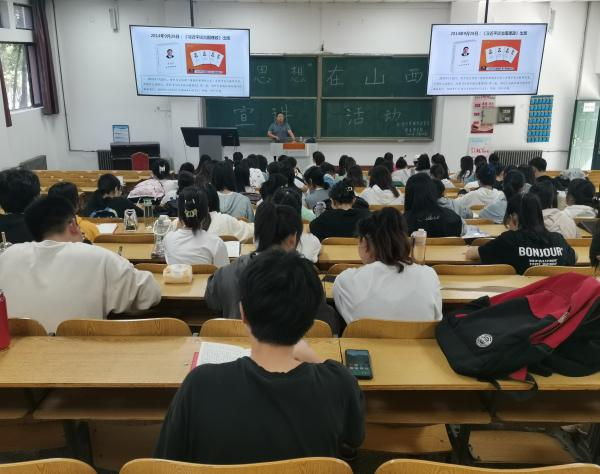 2022年9月20日中午1:00,经济与管理系在致学楼105教室,举行“新思想在山西”9月主题宣讲会。经济与管理系党总支副书记王琳主持宣讲会。经济与管理系投资学学生党支部、资源与环境经济学学生党支部、电子商务学生党支部的学生党员参加宣讲会。