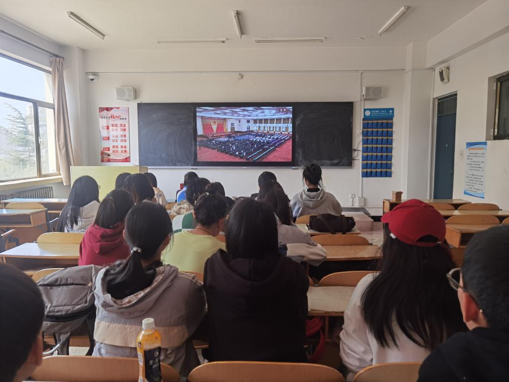 5月10日上午10点,庆祝中国共产主义青年团成立100周年大会在北京人民大会堂隆重举行。为进一步感受庆祝大会盛况,深入学习习近平总书记的重要讲话精神,经济与管理系组织团员青年在勤学楼201教室集中观看庆祝中国共产主义青年团成立100周年大会直播盛况,聆听习近平总书记重要讲话,畅谈学习体会和感受,共同庆祝建团百年。经济与管理系党总支副书记王琳和系分团委委员、21电子商务1班团员青年一起现场观看直播。