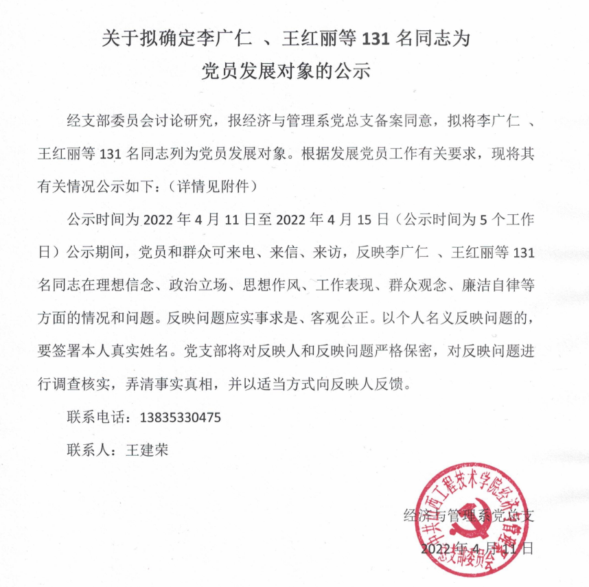 2022年上半年拟确定入党积极分子公示