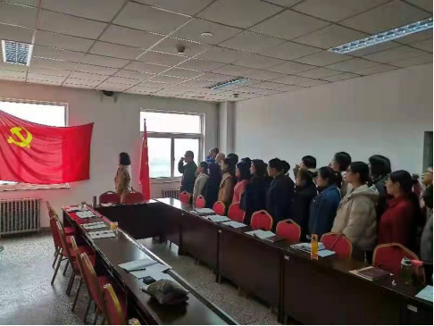 最后,由陶芳渊领誓,全体党员面向鲜红的党旗,再次庄严宣誓,“我志愿加入中国共产党……随时准备为党和人民牺牲一切,永不叛党。”铿锵恢宏的誓词,一字一句,神圣而豪迈,体现了党员同志将以实际行动去恪守对党的承诺,立足本职争当先锋,为评建工作贡献自己的力量!