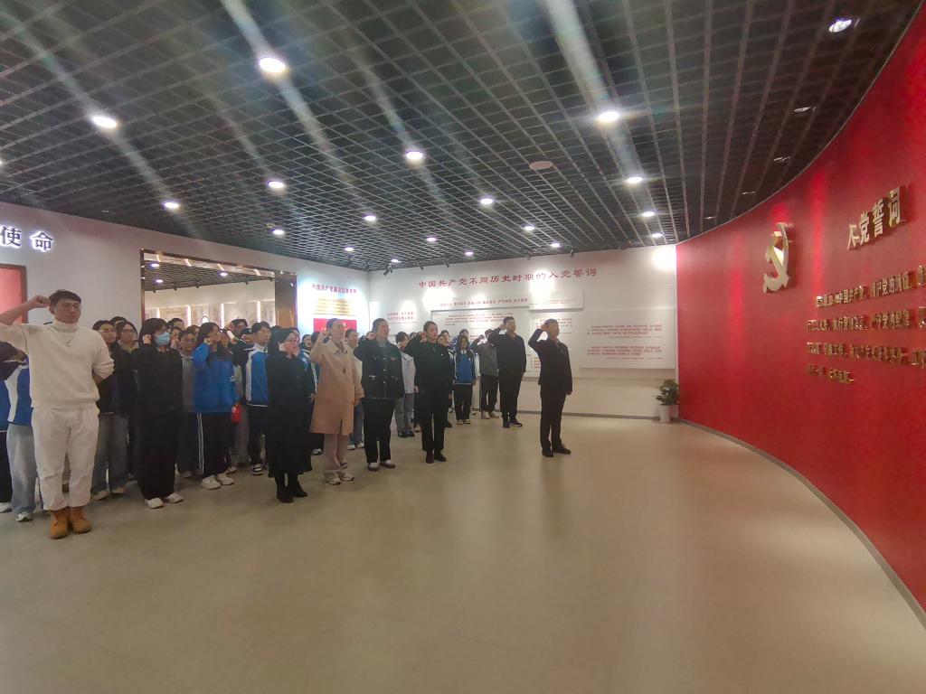 参观结束后,在教育基地的宣誓大厅,经济与管理系党总支书记刘小军带领全体党员重温入党誓词。全体党员在宣誓墙前庄严地举起右拳,铿锵有力的誓言表达了对党的无限忠诚。