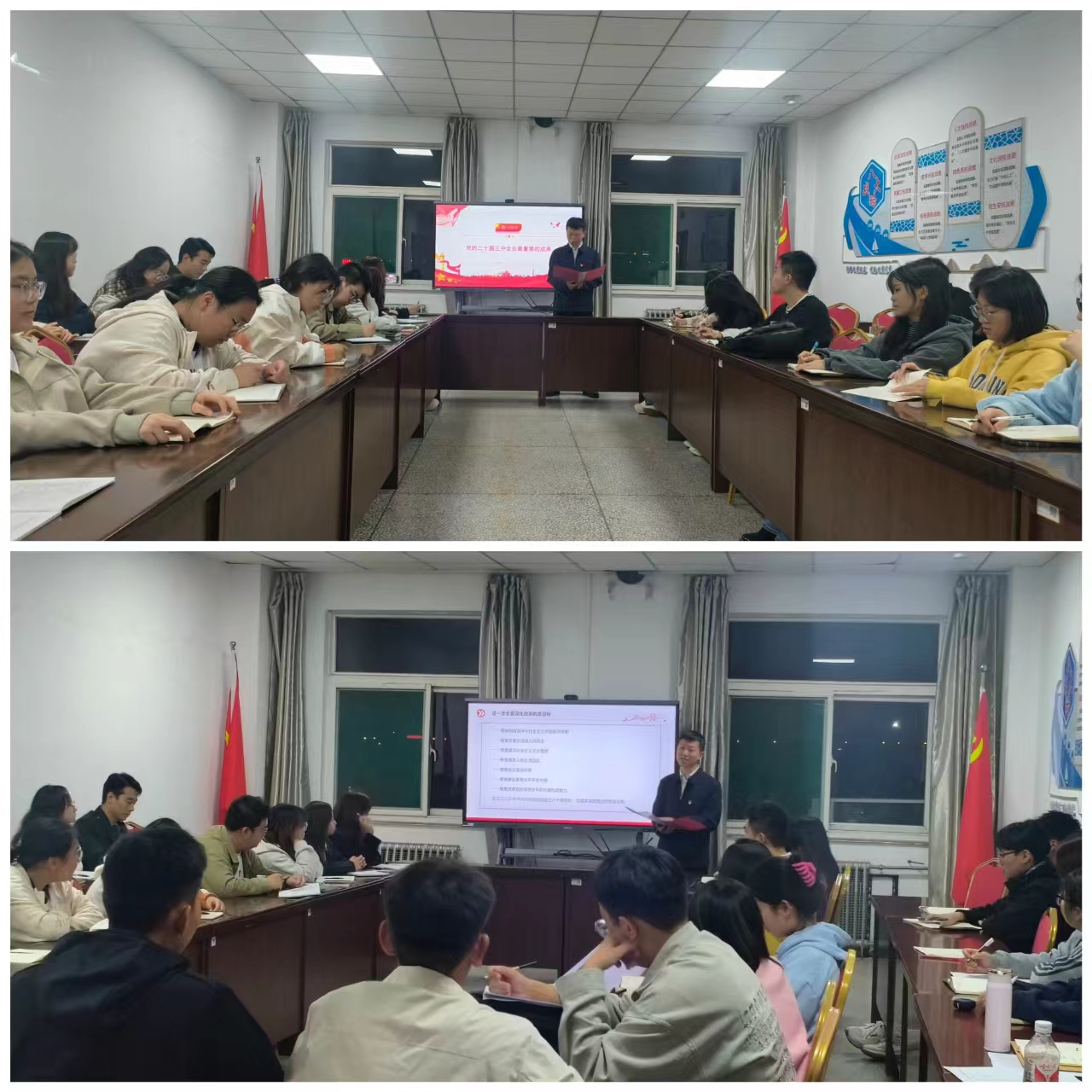 2024年10月9日晚,经济与管理系党总支书记刘小军,在思贤楼五层会议室,为本系第56期入党积极分子进行了党的二十届三中全会精神宣讲活动。