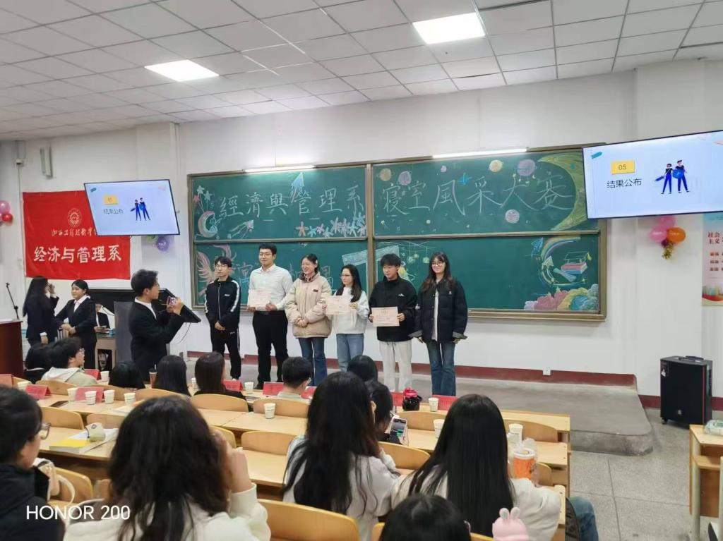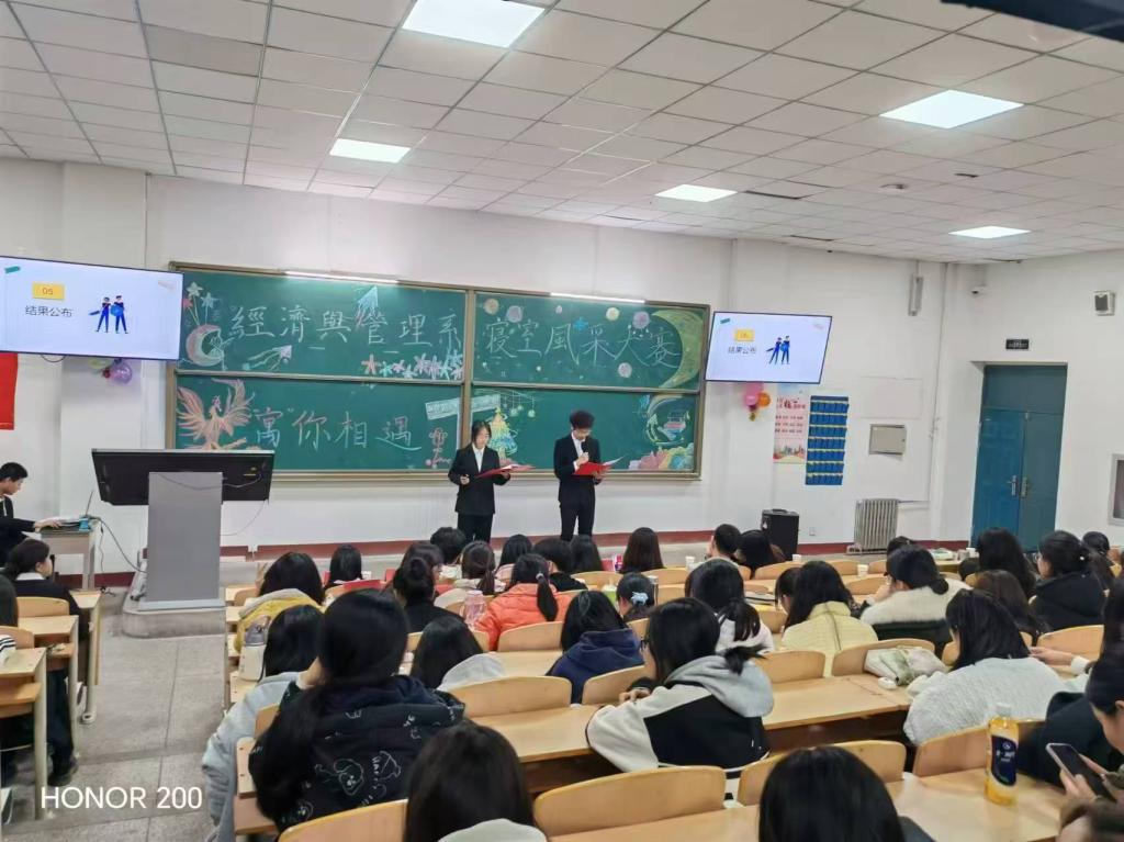 为了丰富同学们的寝室文化生活,提升寝室文化的品质,展现寝室的精神风貌,增进寝室成员间的默契与交流合作,彰显学生独特的宿舍文化与风采,经济与管理系在致学楼405举办了一场主题为“寓”你相遇,一见钟“寝”的寝室文化风采大赛。