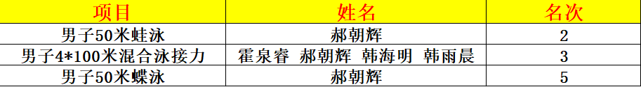 本次比赛现场,我系郝朝辉同学沉着冷静,激流“泳”进,禀赋“百折不挠”的坚韧,充分展示出了不凡的专业功底,并取得了斐然的成绩:个人荣获“男子50米蛙泳第二名”、“男子4×100米混合泳第三名”、“男子50米蝶泳第五名”,共获一枚银牌、一枚铜牌。此次比赛中,我校学生获得大学校园组“团体总分第三名”,创历史最佳成绩。这些成就的背后,是游泳队日复一日的训练,是对每一个细节的精益求精。