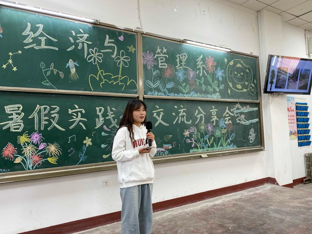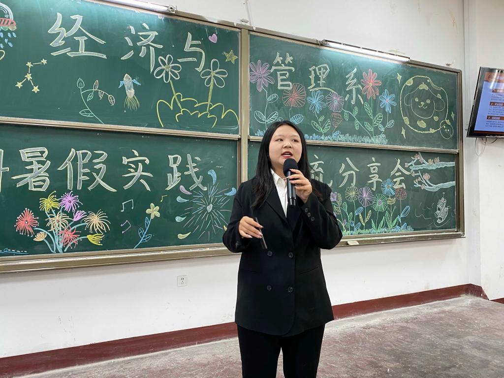 在充满希望与收获的十月中旬,为更好地帮助学生洞悉社会、认知自我,并积极投身于社会实践活动,强化志愿服务意识,提高自身综合能力,以更出色的姿态拥抱社会,经济与管理系于10月12日上午九点在致学楼205举行了暑假社会实践交流分享会,同时分团委书记李晶老师也参加了此次分享会。
